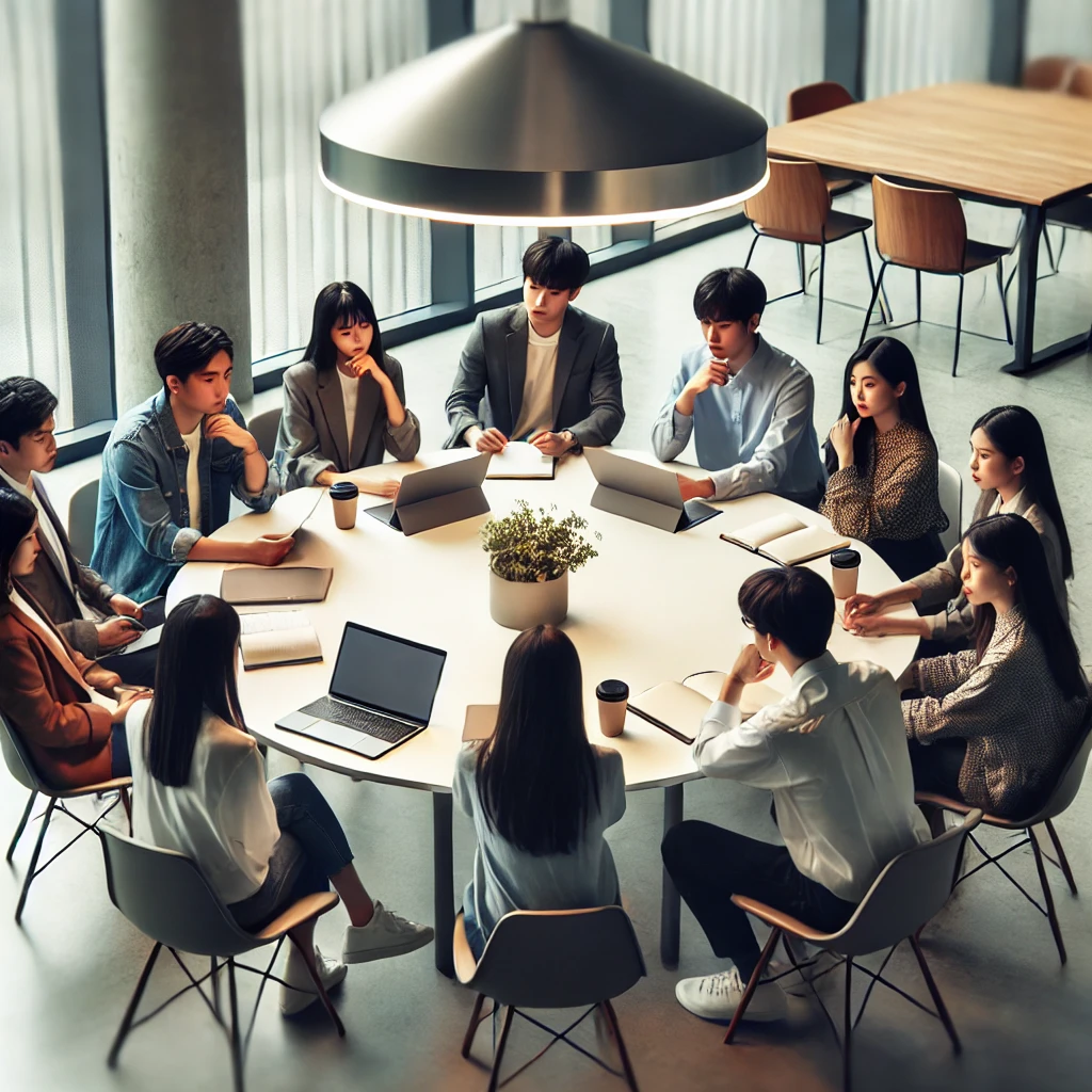 청년들이 정치 토론을 통해 의견을 나누는 모습"